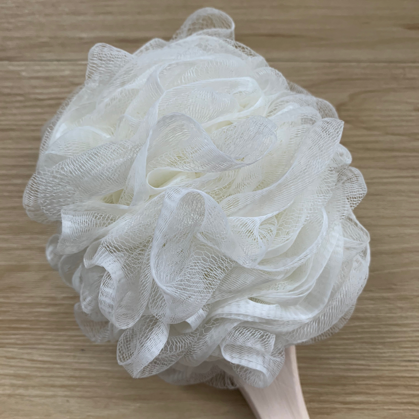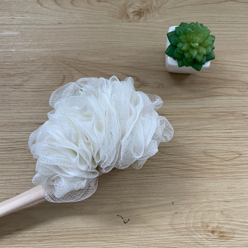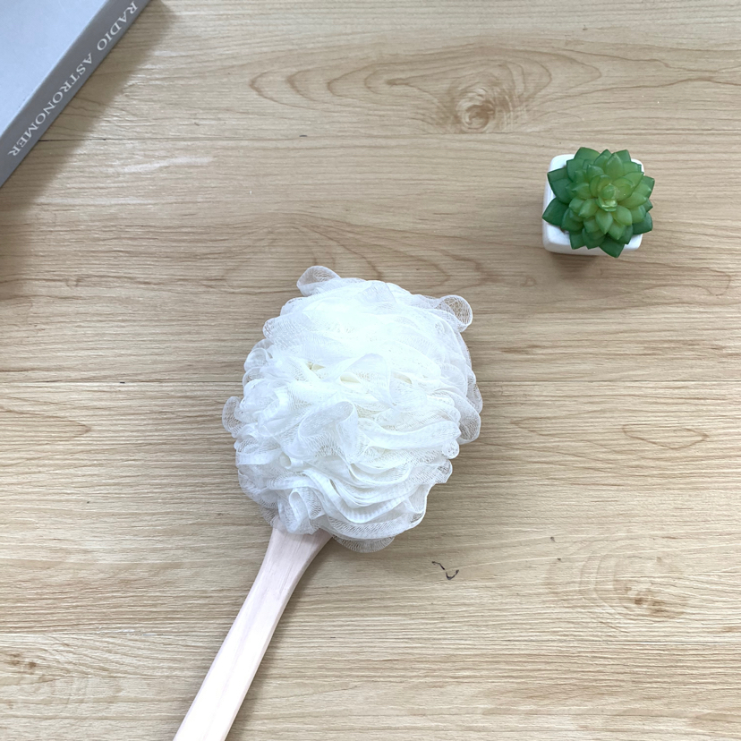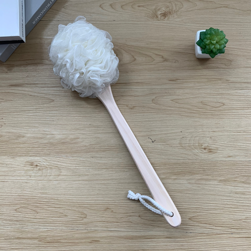 Mango largo multifuncional para bañarse, frotarse, limpiar la espalda, bolas de baño de bambú, flores de baño de bambú