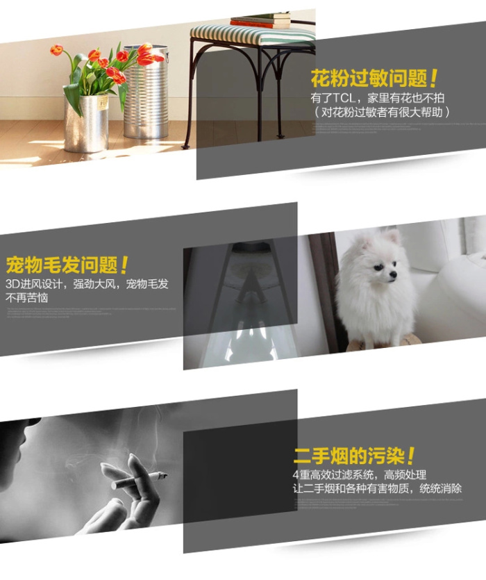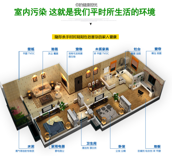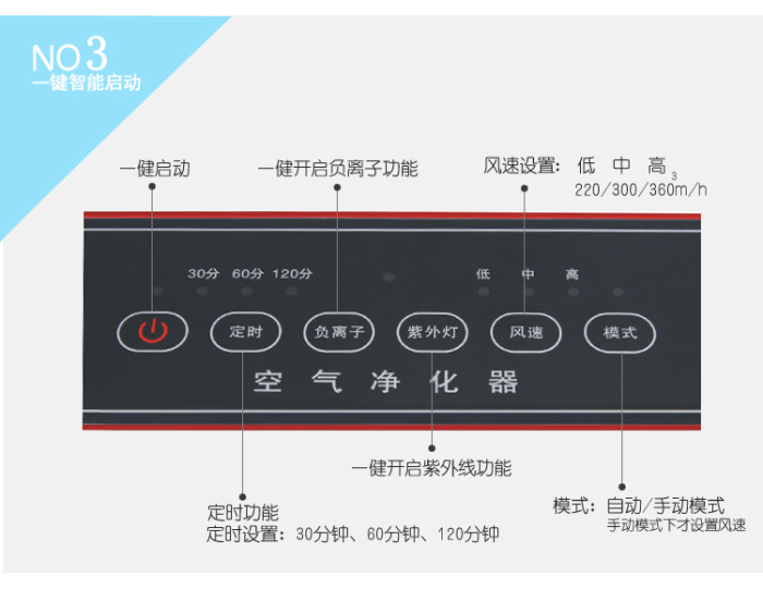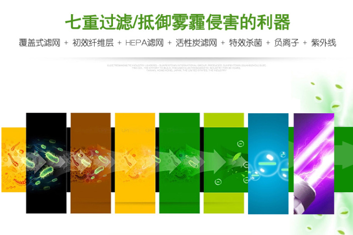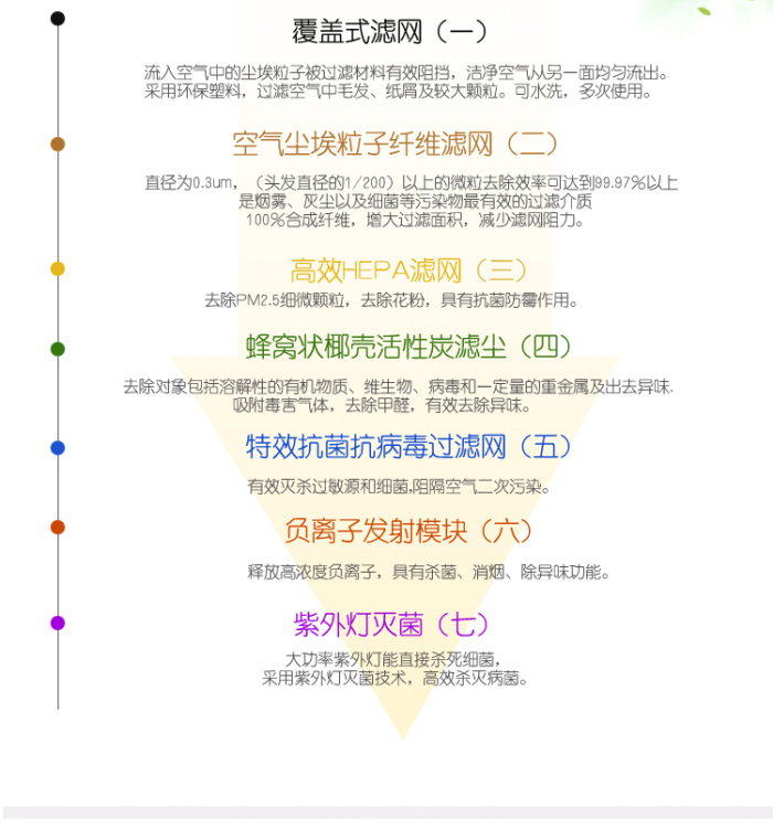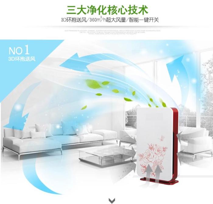 Diseño de impresión del purificador de aire inteligente silencioso de siete filtros con gran viento para el purificador de aire doméstico de eliminación de neblina
