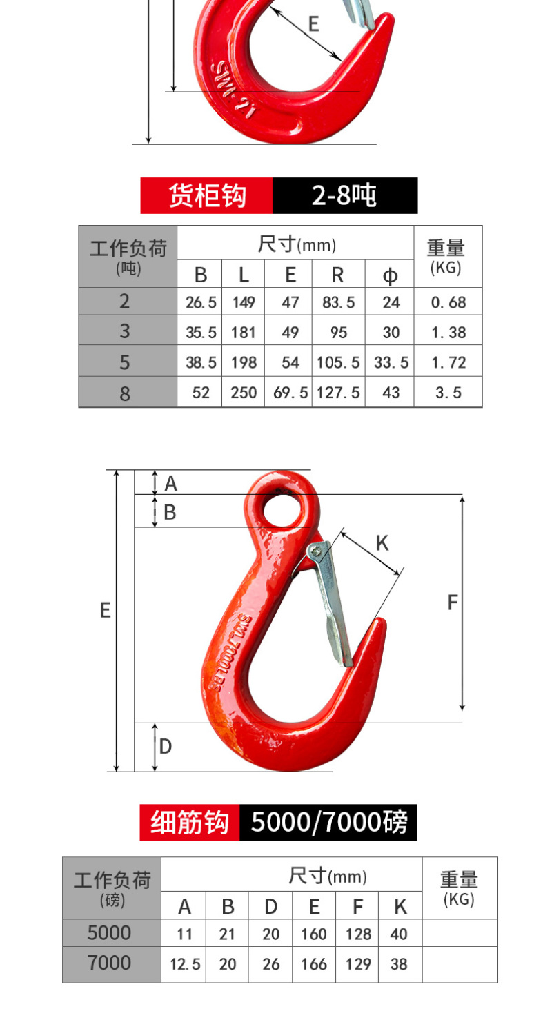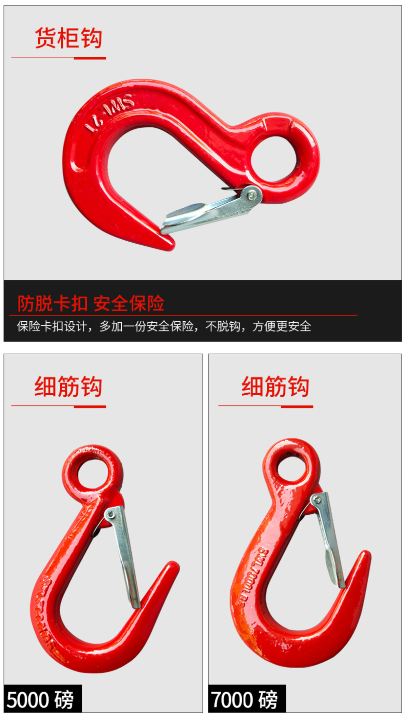 Gancho de tendón fino anillo de elevación de tendón fino gancho de contenedor de tendón fino anti - desacoplamiento lengua de elevación gancho de anillo de elevación