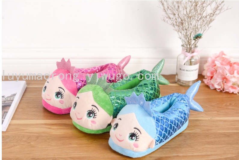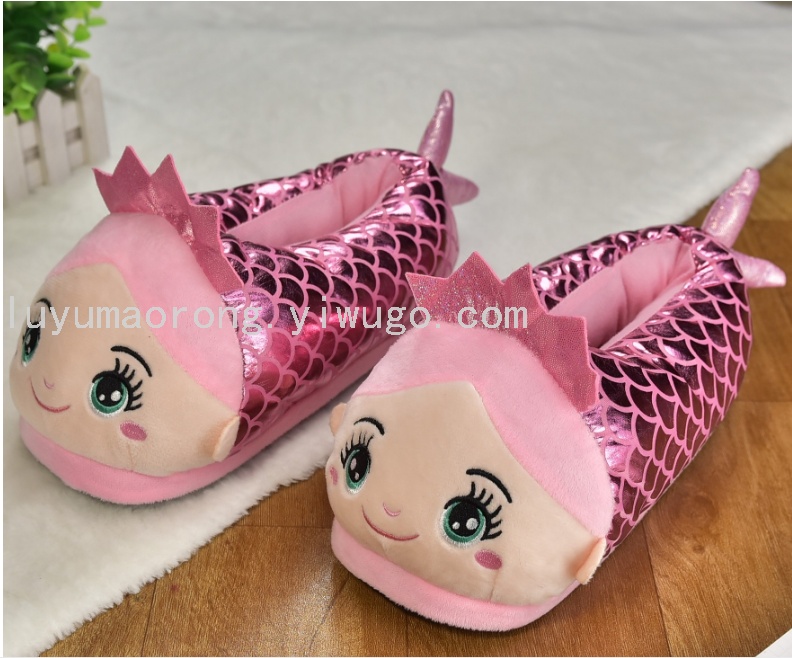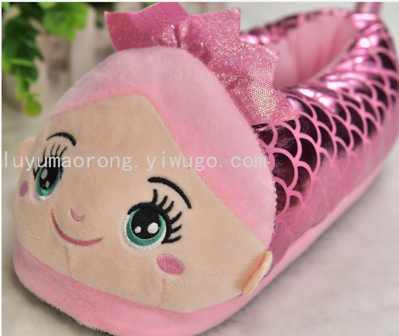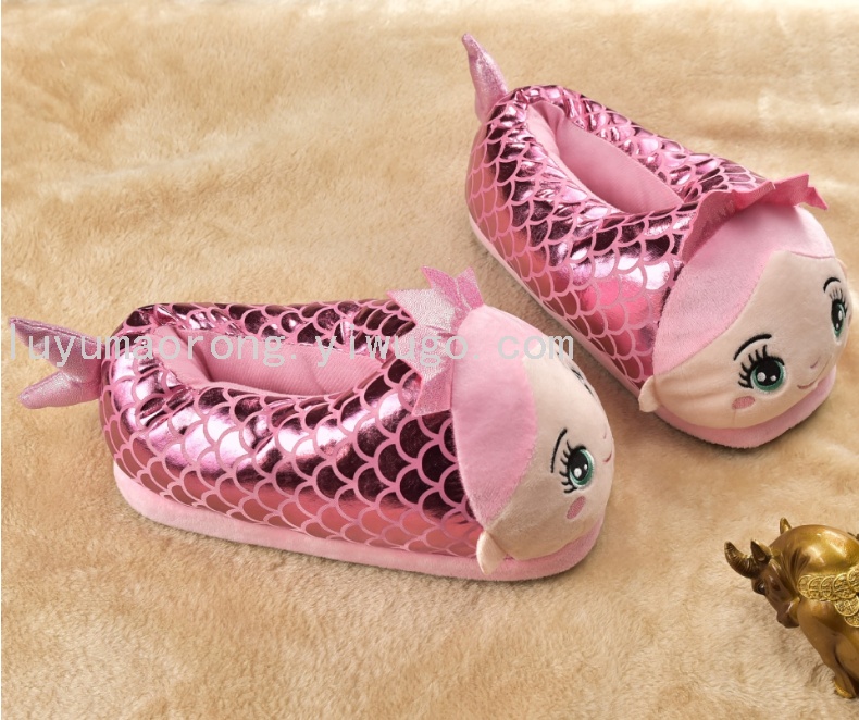 Zapatos de algodón interiores en invierno dibujos animados zapatos de sirena lentejuelas zapatos de algodón interiores inventario de zapatos de algodón
