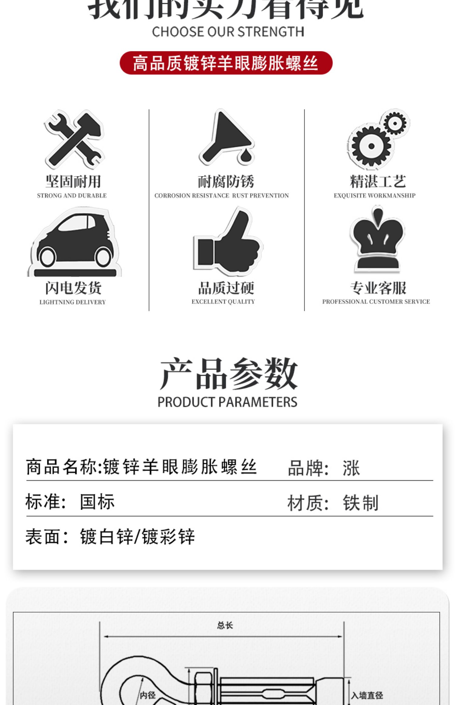 75fi venta al por mayor de anillos de expansión de ojos de oveja galvanizados con tornillos de expansión en el anillo fábrica de tornillos de expansión de venta directa para explotar M6