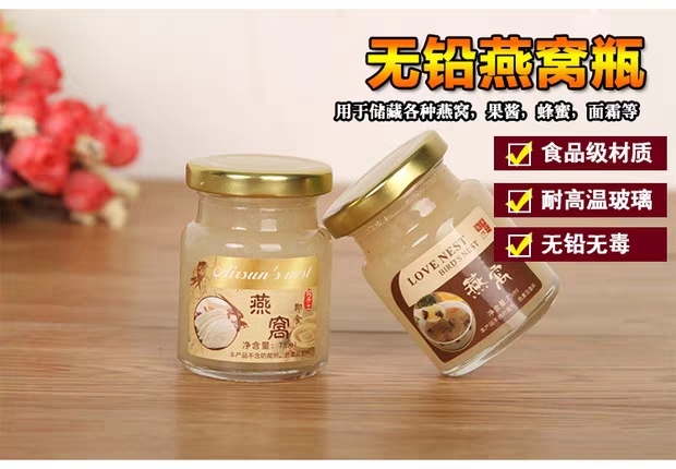 Botella de nido de pájaro de vidrio de alta calidad 75 ml 100 ml botella de mermelada de miel sin plomo botella de nido de pájaro dividida en botellas de miel