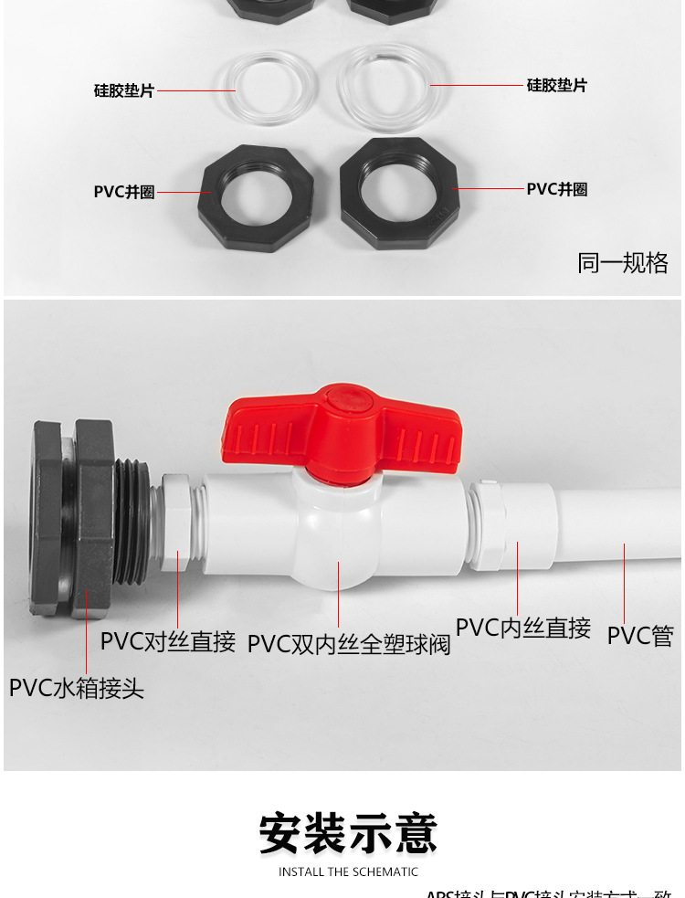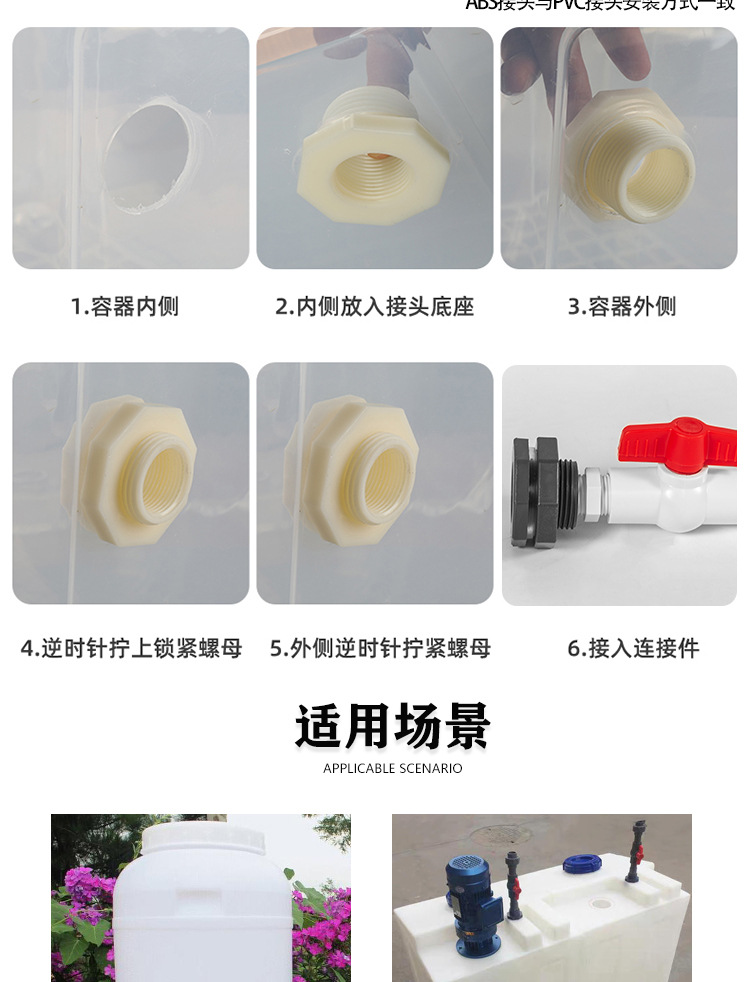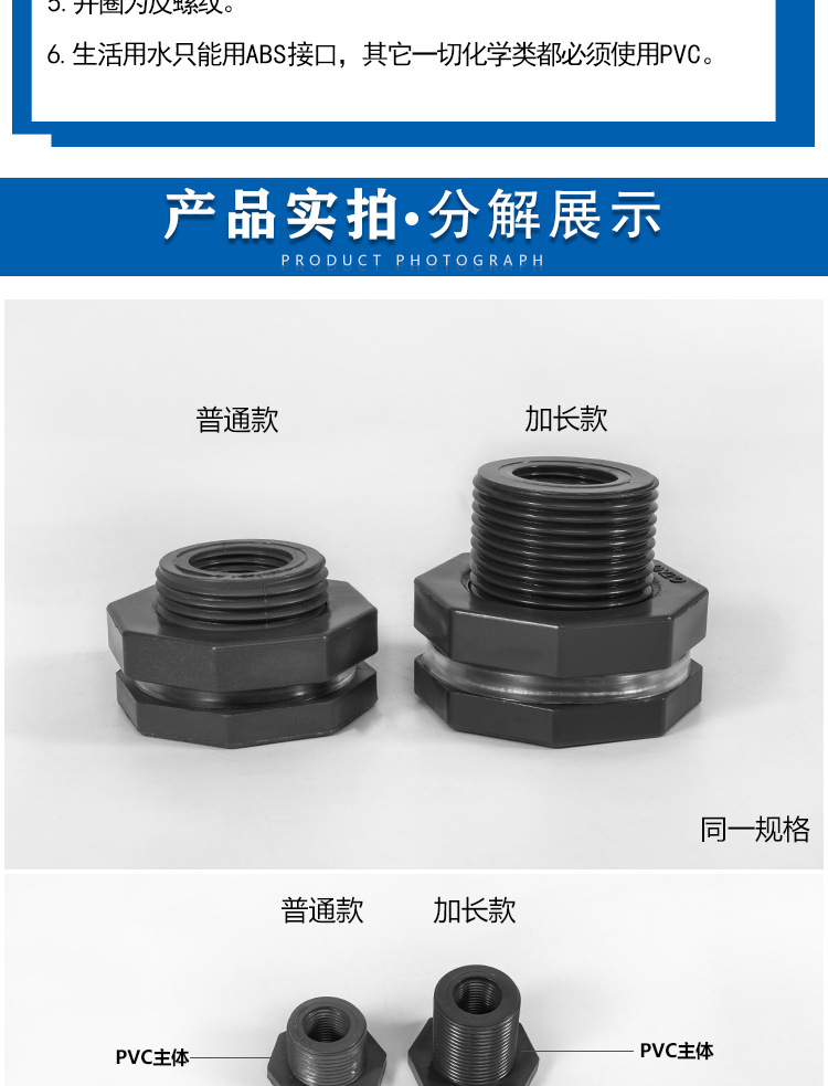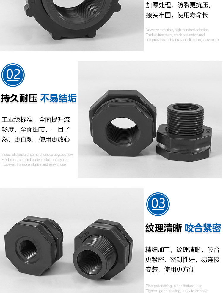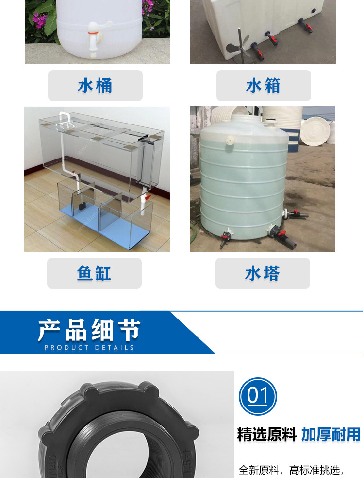 Conexión del tanque de agua de pvc, conexión de la torre de agua de plástico, conexión de la piscina, dientes internos de plástico, conexión de alambre exterior, accesorios de la torre de agua
