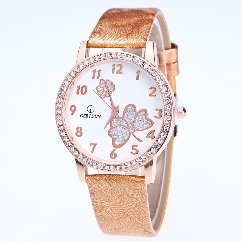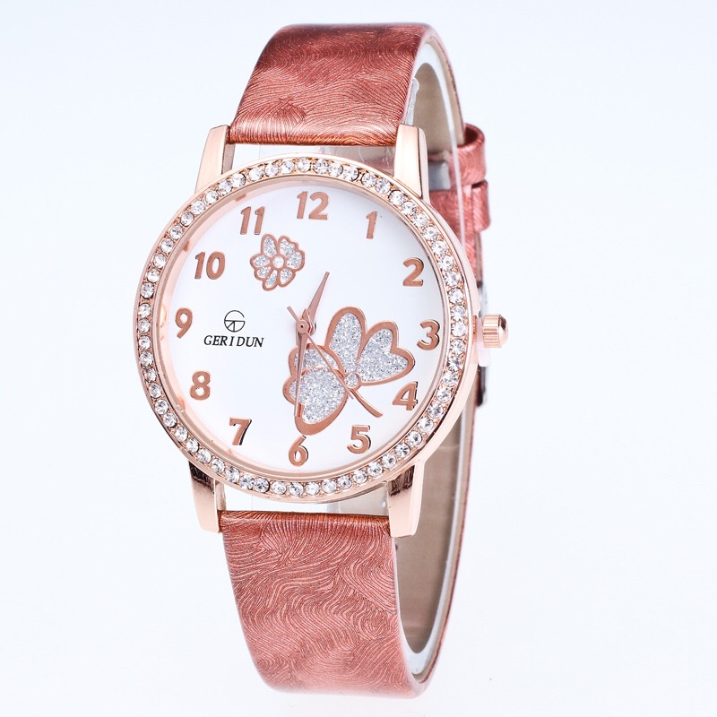 Reloj de diamante mariposa de oro rosa con Correa impermeable y reloj de Correa digital