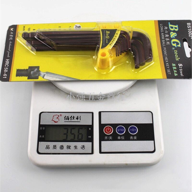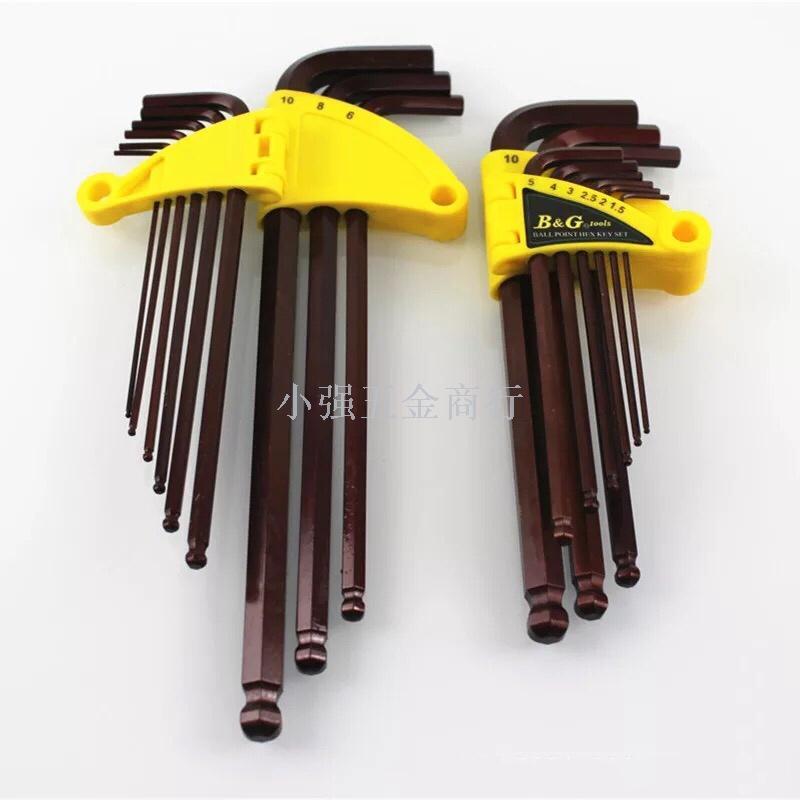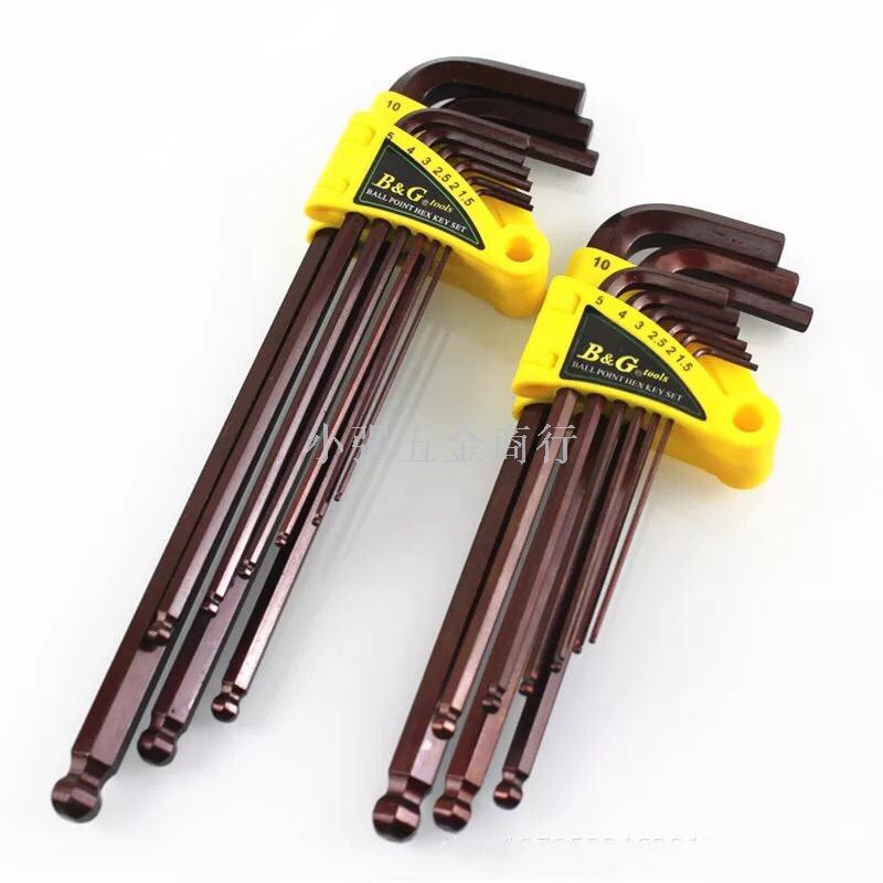 Conjunto de llave hexagonal interior de cabeza de bola de color bronce al por mayor, material industrial s2, tipo l, conjunto de llave hexagonal interior de 9 piezas